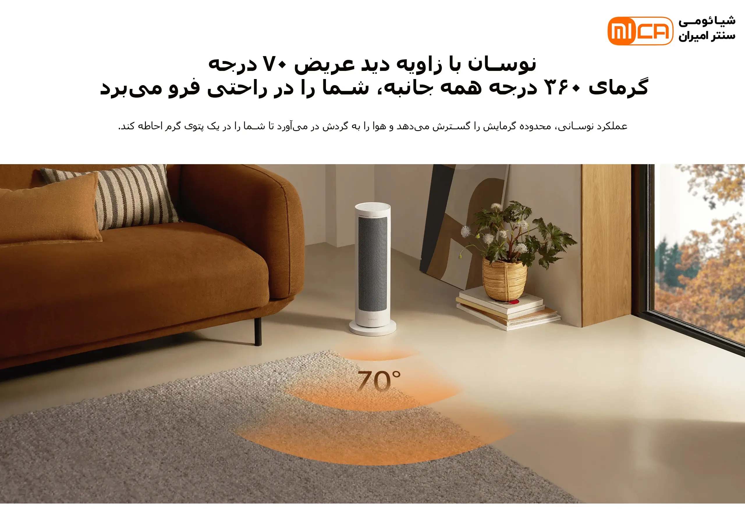 بله، بخاری شیائومی با نوسان ۷۰ درجه و گرمایش ۳۶۰ درجه، گرما را در همه جهتها پخش میکند.