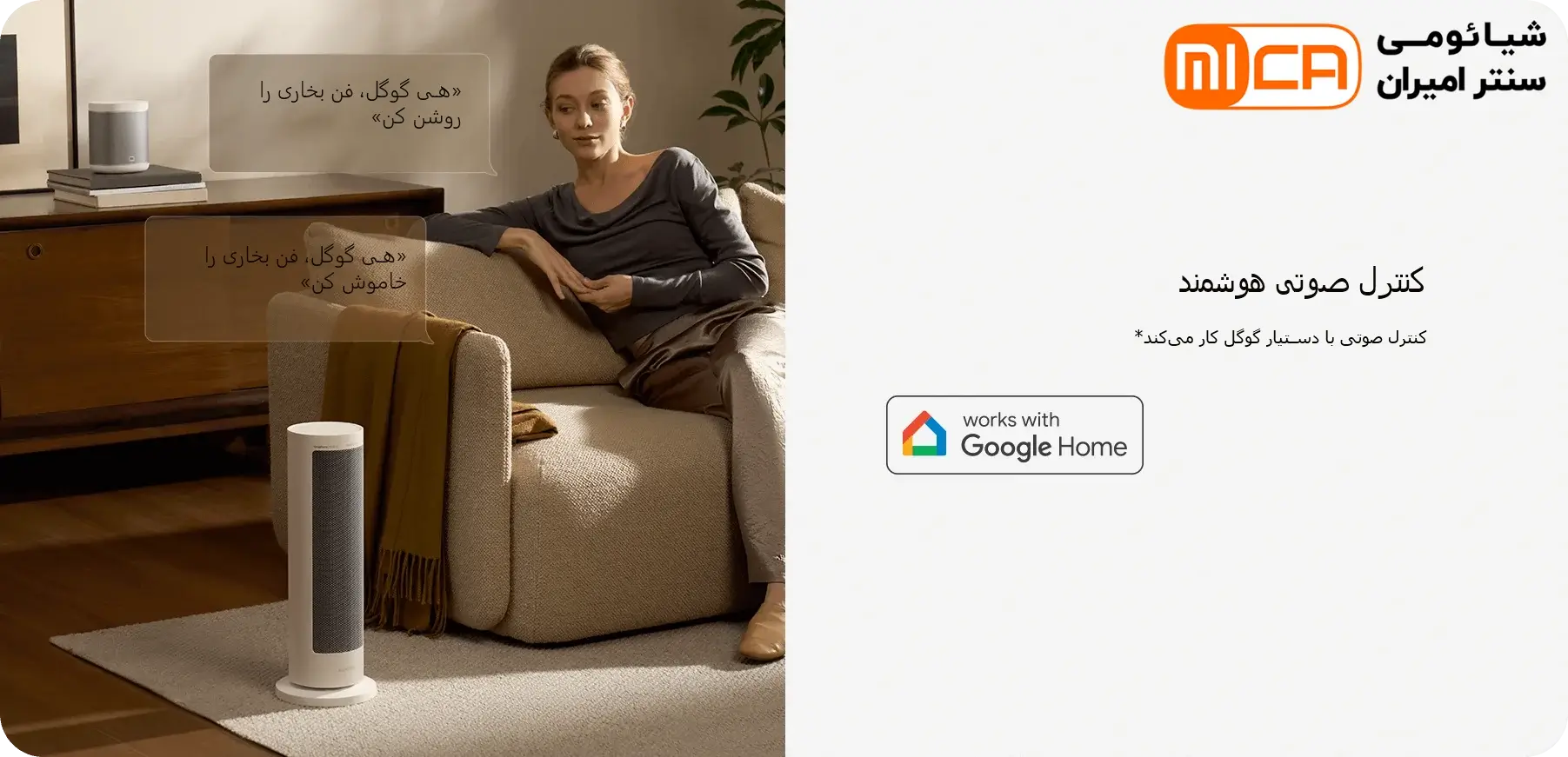 بخاری هوشمند شیائومی با پشتیبانی از Google Assistant و اتصال به خانه هوشمند شیائومی، امکان کنترل کامل از طریق فرمان صوتی را برای شما فراهم میکند. تنها با گفتن «هی گوگل، فن بخاری را روشن کن»، میتوانید گرمای دلخواه را بدون لمس هیچ دکمهای فعال کنید.